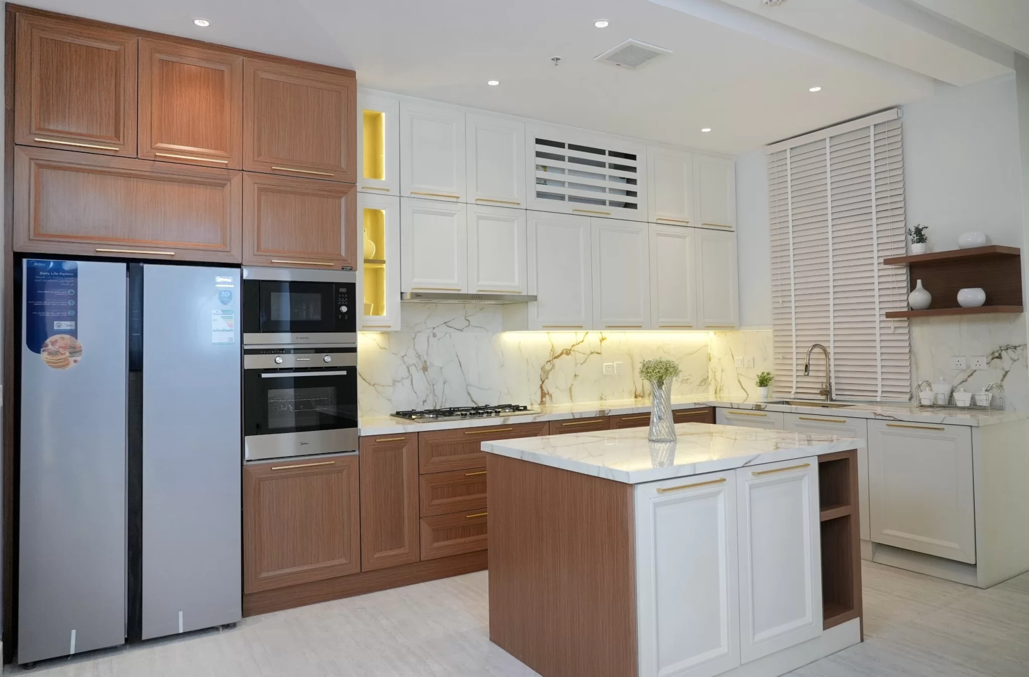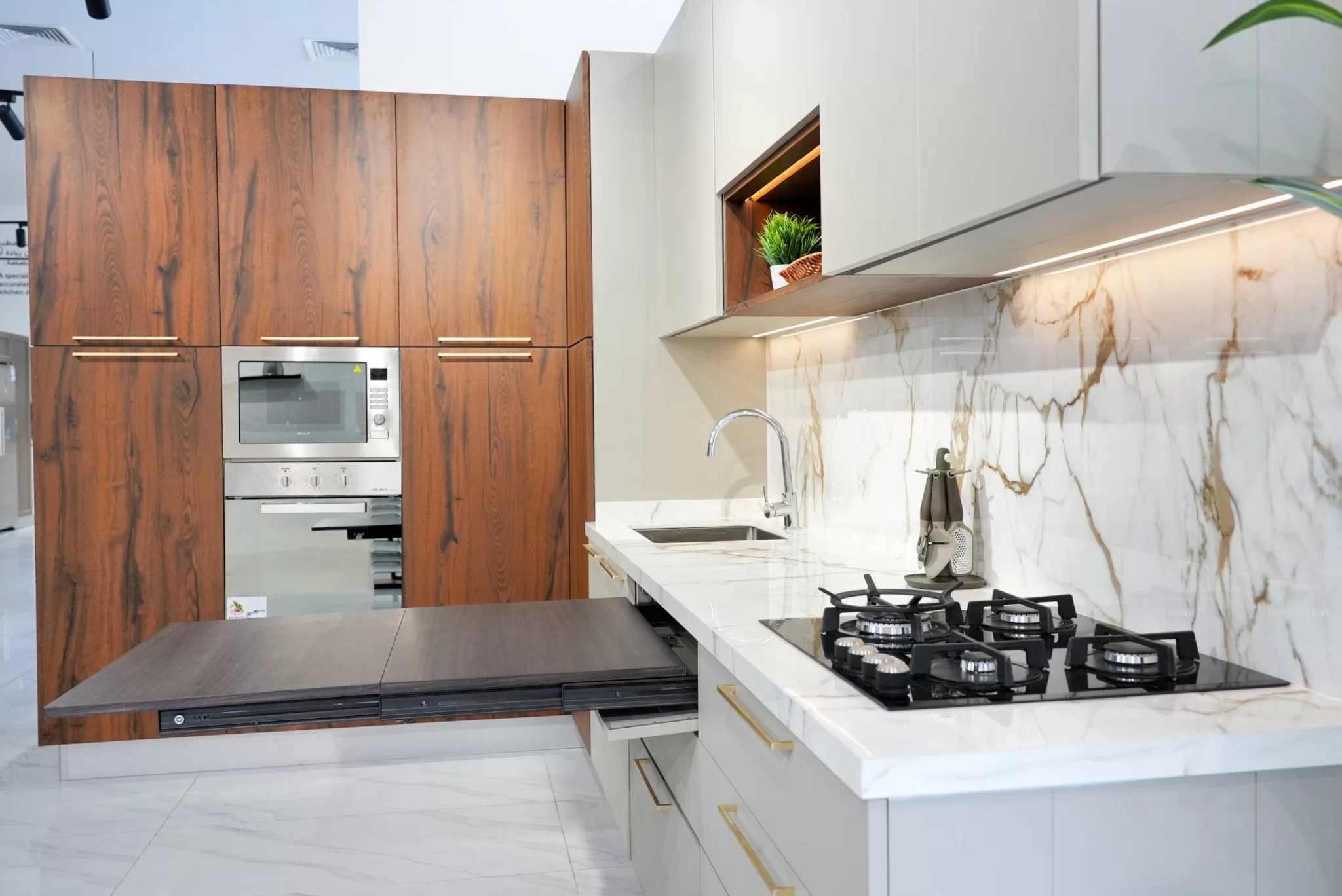 مطابخ عصرية فاخرة تشع بالفخامة والأناقة والذوق الرفيع. فهي تمزج بسلاسة بين التصميم المتطور والمواد الراقية، مع إعطاء الأولوية للتميز الجمالي والوظيفة. تم تصميم هذه المطابخ خصيصًا لأولئك الذين يقدرون أرقى الأشياء، حيث تعكس كل التفاصيل الرقي والأناقة.